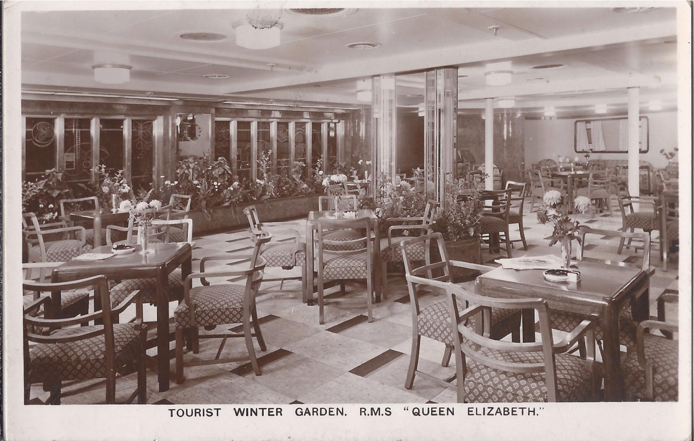 RPPC Cunard QUEEN ELIZABETH Winter Garden AUCT 11 INT 5 024