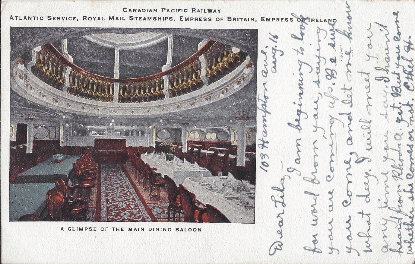 'Main Dining Saloon', Undivided, DB, Cancelled 1912, good condition