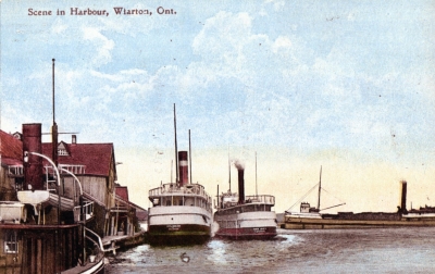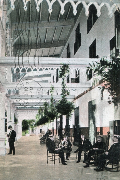 STREET SCENE IS A LITHO-EMBLEM IS COLLOTYPE. Laporte's ? Hotel marked with 'x' in the view. Divided, unused, damaged corners & edges