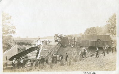 On #2 can read 'Erection Car No. 3 Hamilton Bridge Works Co. #3&4 show span falling and wrecked crane. Divided, unused, CYKO 1904-1920's stamp box, #4 has corner crease