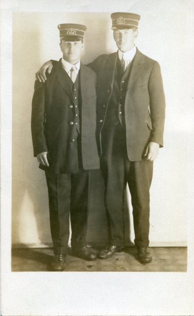 First names noted on reverse. Divided, unused, AZO 1904-1918 stamp box, light areas from poor exposure