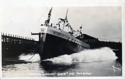 RPPC 1913 Launch Steamship "NORONIC" at Port Arthur ID 10 354