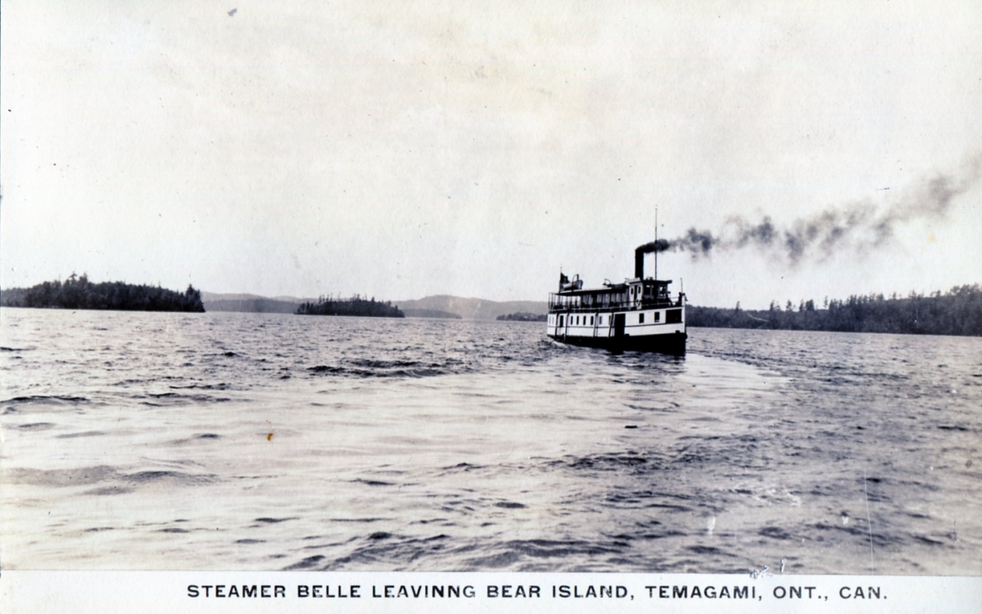 RPPC Temagami Steamer "BELLE" leaving Bear Island ID 10 718