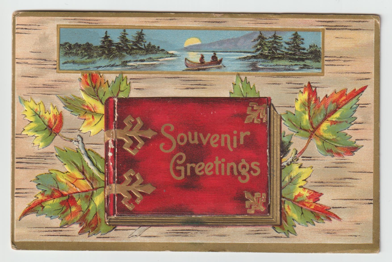 10 interior scenes/buildings in the town. Pub. SH CO.?  Divided, cancelled 1910, corner & edge wear, fold is fragile but intact.